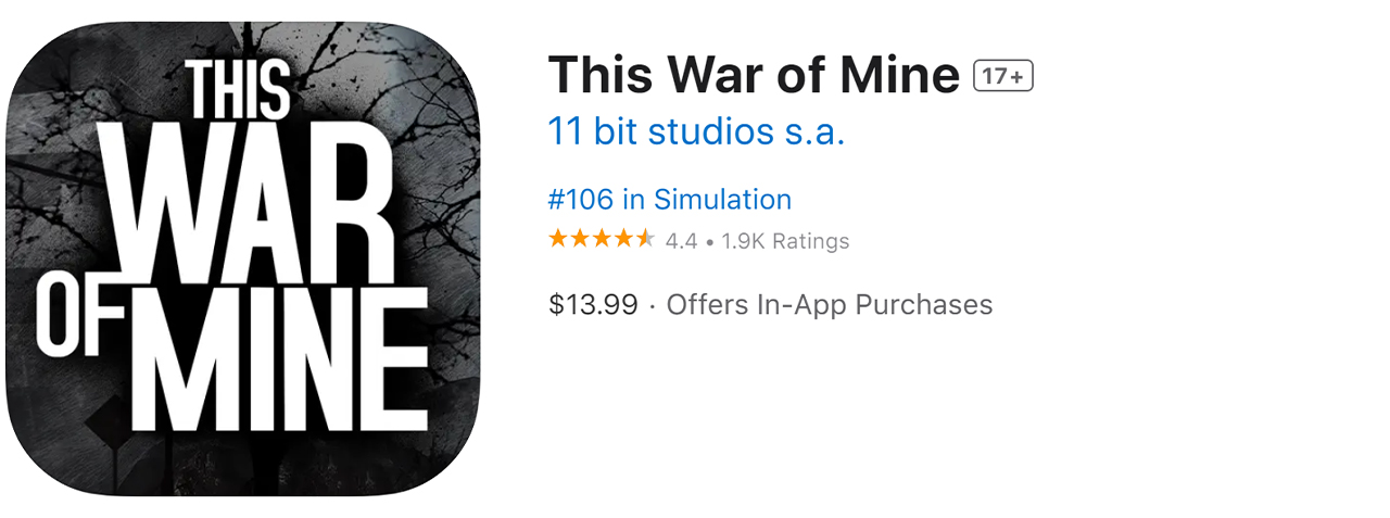 包含以下两款游戏:• This War of Mine(解锁完整版dlc)• This War of Mine-Stories